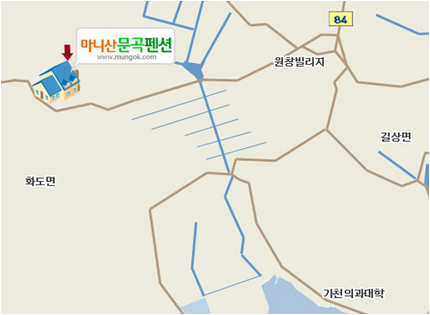 마니산 버섯부대찌개(문산교회)와 문산리 마을회관 사이길로 보시면 문곡 펜션이 보입니다.